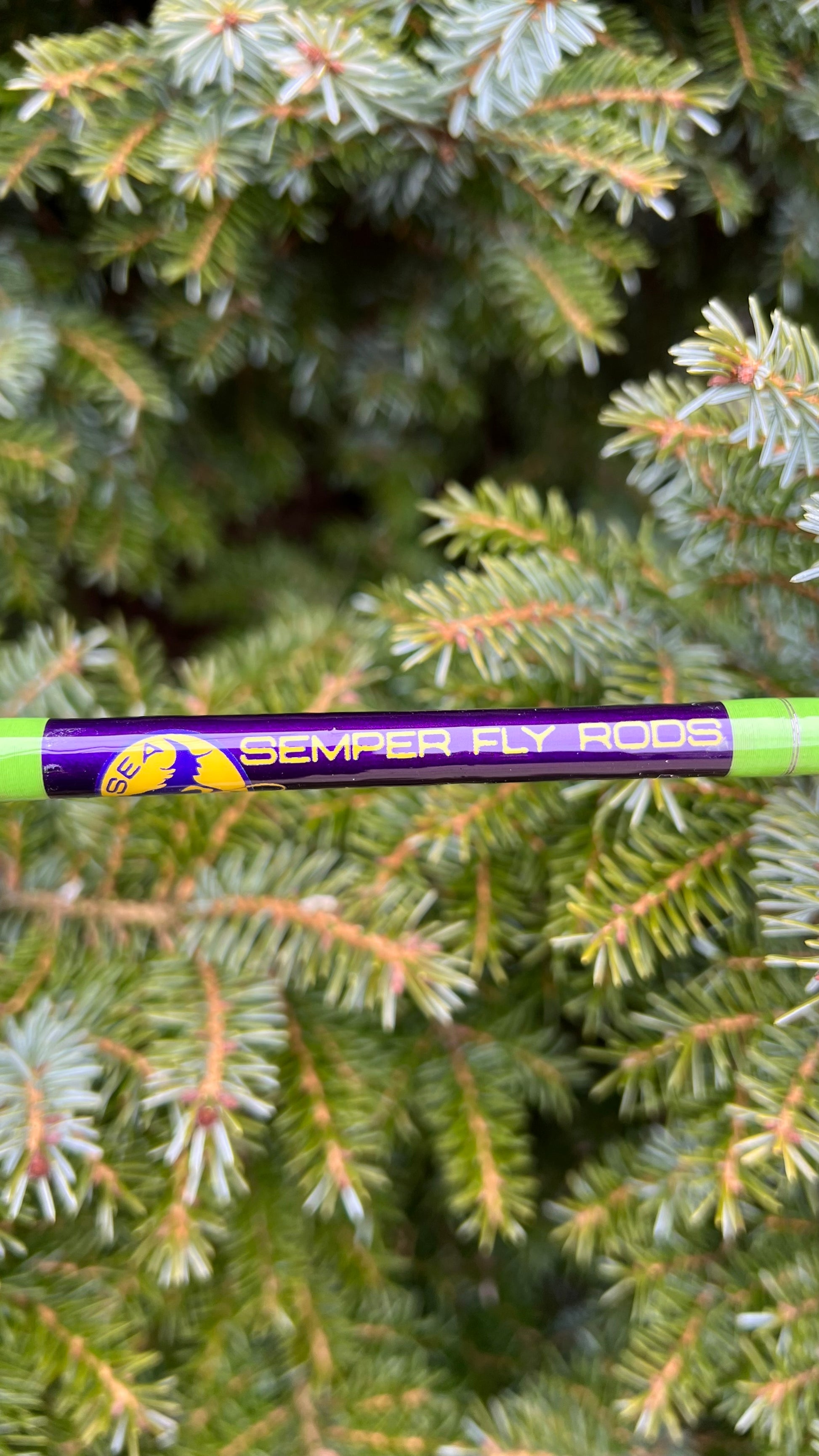 The Sea Witch is the name sake for the first F/V I worked on as a First Mate. This Fast action 9' "Saltwater Safe" Rod is constructed on a high modulus metallic purple backbone, finished with titanium recoil guides with a custom double dyed burl reel seat. Rod includes a Rod Sock and Rod Tube and is covered by out no fault limited lifetime warranty.